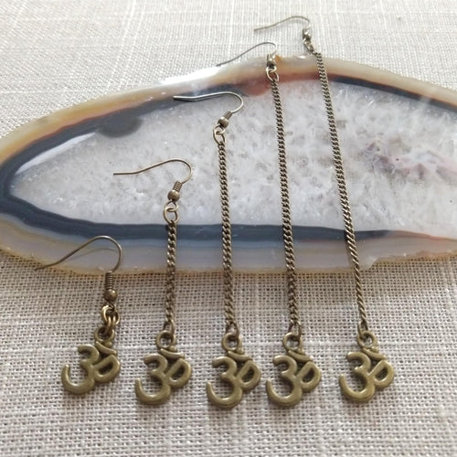 Ohm Aum Earrings - Dangle Drop Chain Earrings in Your Choice of Five Lengths