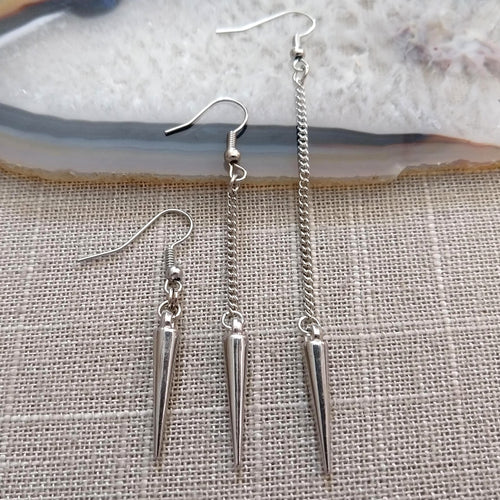 Silver Spike Earrings - Spike Earrings / Silver Earrings / Dangle Earrings / Long Earrings / Chain Earrings / Bohemian Jewelry
